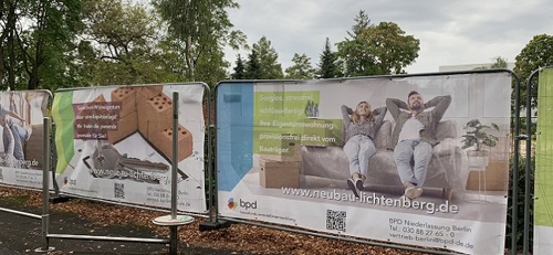 Die Bauzaunbanner hängen